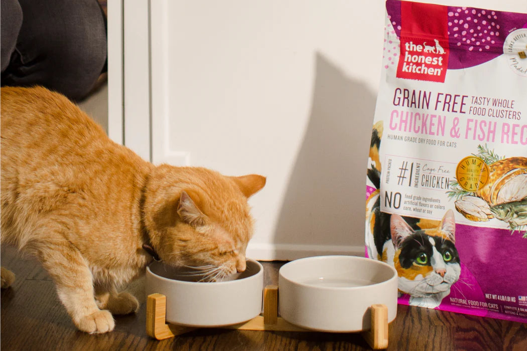Four pieces of The Honest Kitchen's Whole Food Clusters dry cat food.